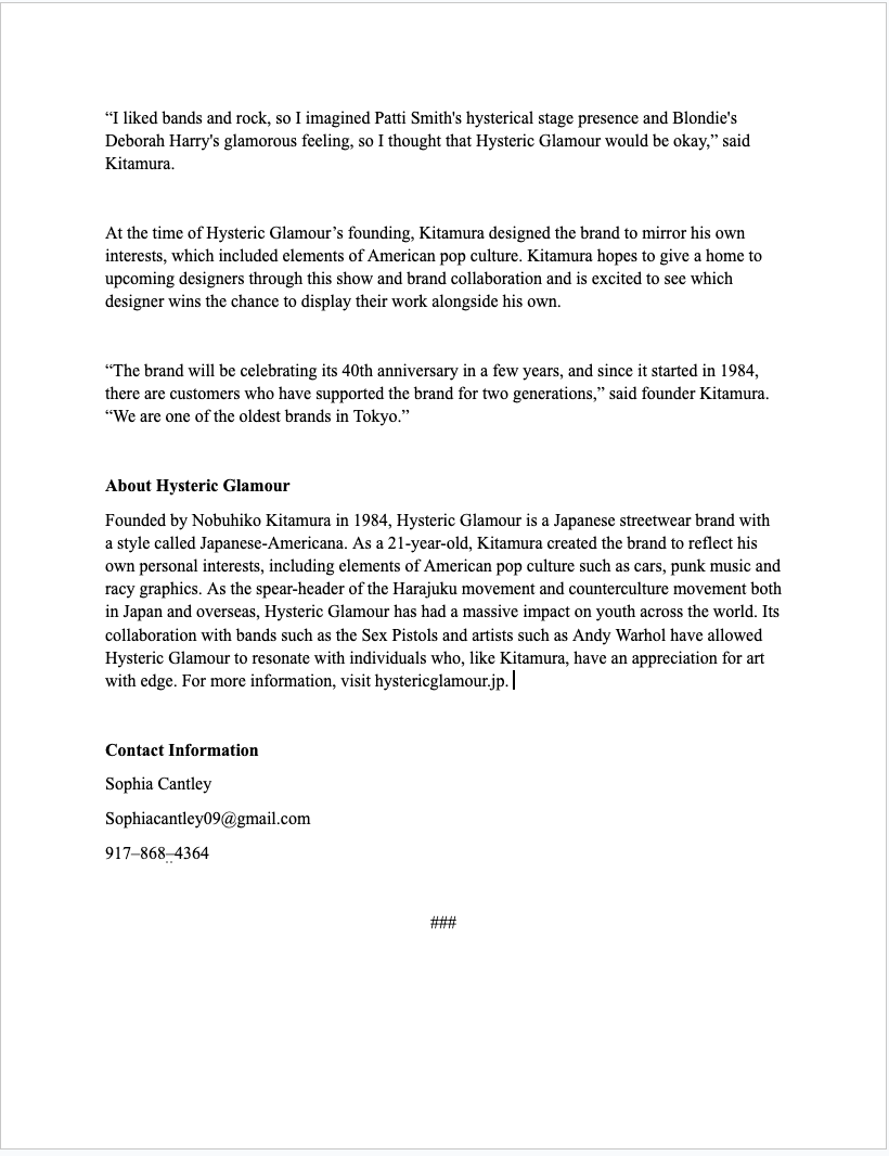 Media Contact List and Email Pitch